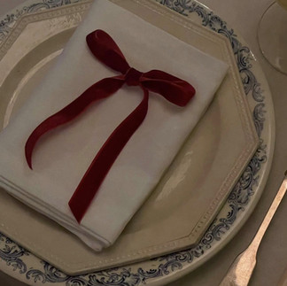 The trend of the season is bows! This cost-effective trend is so easy to do and it dresses up your already existing decor. A serious win, win for me. You can dress your candelabras, candleholders, glassware, tree, etc. with a sweet ribbon (bonus points if it's velvet).